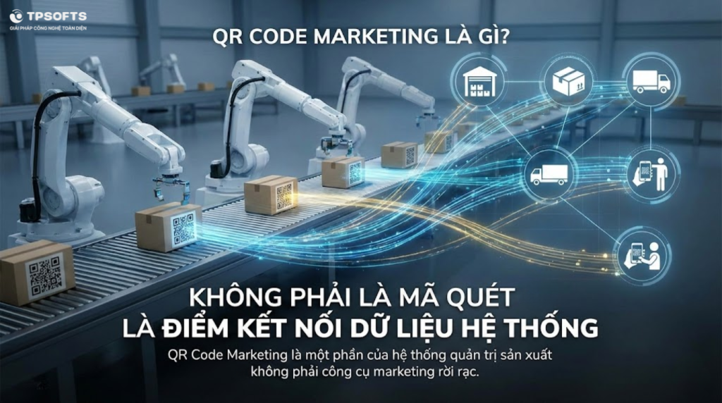 QR Code Marketing là một phần của hệ thống quản trị sản xuất, thể hiện trạng thái sản phẩm, hành trình phân phối và mức độ tương tác của người tiêu dùng. Khi được đưa vào dây chuyền sản xuất và quản lý bằng TPCHECK, QR Code trở thành điểm kết nối dữ liệu giữa nhà máy, hệ thống phân phối và thị trường.