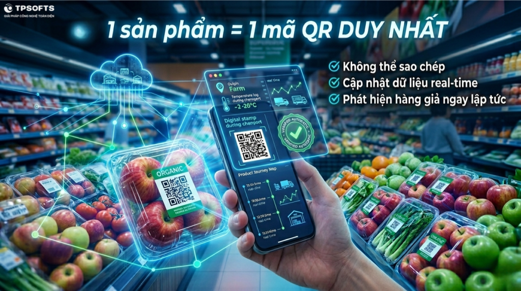 Truy xuất nguồn gốc thực phẩm là quá trình định danh số hóa cho từng đơn vị sản phẩm nhỏ nhất. Sự khác biệt cốt lõi nằm ở QR Code biến đổi (Dynamic QR):